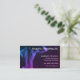 This customizable chiropractic business card features a man with spine drawing superimposed on his back, on a blue and purple toned background.