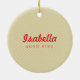 Lightweight, smooth, pure white ornament with nice sheen. Perfect size to be seen from across the room ... and to attract closer inspection! Price was great for ordering enough for the whole family! Clear, bold black design just as requested. Matches the order exactly. Just so nice!