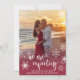 Photo Christmas Pregnancy Announcement Cards. Expecting parents! Modern white hand lettered typography "we are expecting" script card to share your happy news with family and friends in the holiday season. At the backing red color background with white snowflakes. You can personalize the design by replacing the sample text and vertical photo. #3343 If You need help or matching items please contact to me!