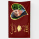 This modern maroon red and gold graduation banner for the class of 2025 graduate features a heart-shaped photo, a "Congrats, Grad!" saying, and a graduate's cap illustration. Please personalize with the graduate's name, upload a custom photo via template, and change a year before ordering.