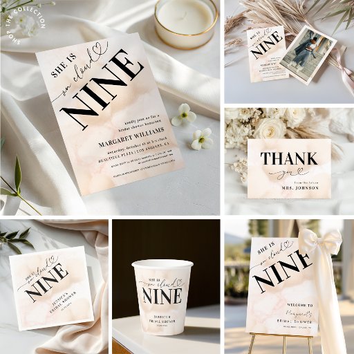 You can apply the design of your She Is On Cloud Nine Heart Script Bridal Shower Invitation to other items for a party such as stickers. The same goes for all of our digital products - any digital product/ design you purchase can also be used on any Zazzle product.
