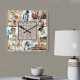 Photo Collage 16 Picture Light Wood Numbered Square Wall Clock