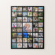 Photo Collage 45 Pictures Black Jigsaw Puzzle. Create a unique, memorable gift of a collection of 45 photos for a gift with hours of fun time and time again or create a keepsake wall hanging by gluing the puzzle together after completion. Ideal for anniversary and grandparent gifts, birthdays and milestone achievements and fun for a retirement gift or a collection of your favorite vacation pictures or any theme. The editable black background can be changed in EDIT. OPTIONS: The sample is shown in the 11x14" size with 252 pieces; other options are available on the ordering page. ASSISTANCE: Contact the designer if you'd like this design modified or on another product.