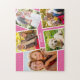 Photo Collage - 5 Pictures and Your Name - Pink Jigsaw Puzzle