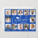 Share the joy of a high school or college graduation with modern photo collage announcements. The pictures and wording on this template are simple to personalize and the colors are easy to change using the Zazzle design tool. Captions under each photo can tell the graduate's story through the years and update family and friends of activities and accomplishments. On the back, include any details of your choice, such as party invitation info, parents' names, special honors, degree title, favorite inspirational quote, graduate's contact info, or plans for the future. The royal blue and white design features modern script calligraphy with a mortar board cap, elegant classic serif typography, and 16 photos of your choice, such as K-12 school pictures, senior portraits, or images from the commencement ceremony. Available as both printed and downloadable digital announcements, these modern graduation cards are a stylish way to share a special day celebration with family and friends. Congratulations to the graduate!