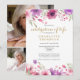 An elegant watercolor floral personalized celebration of life funeral remembrance invitation with a 3 photo collage on the reverse. Designed by Thisisnotme©