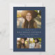 Celebrate your graduate with this classic and simple three-photo graduation announcement. The collage with simple typography is perfect for showing off senior photos. The type includes plenty of room for name, school and year, and the navy background matches the backer of the card. The navy blue color can be adjusted to any school color by clicking "Customize further."