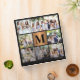 Stylish modern luxury monogrammed initial and signature script family name personalized wedding memories or planning album binder featuring a faux metallic gold copper square with initial letter, 8 custom photos, wedding rings, and your text over a black leather like (PRINTED TEXTURE) background.