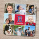 Create your own custom photo coaster! This stylish template showcases eight of your favorite photographs, and is personalized with a monogram letter and text — ideal for a single name, pet's name, sports team, or family surname. You can also customize the background color by using the design editor tool. This stylish design features a retro block font, with a sports jersey style, and is perfect for all ages, including kids, teenagers, and adults. Custom drink coasters are a lovely addition to your home, and make a unique gift for friends and loved ones. Printed colors: crimson red, dark blue navy and white.