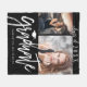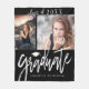 This photo collage blanket is modern and features "graduate" in a hand-lettered font.