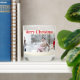 Photo collage Merry Christmas red typography personalized scented candle Christmas gifts, 5 pictures with personalized greeting text editable template candle, a lovely Christmas gift idea