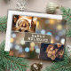 Modern holiday photo collage postcard. Add two of your favorite holiday photos to the postcard. The Happy holidays text is in a trendy and modern white font on a gray background. The back photo features festive lights - you can change it with your photo. Great for Christmas time and New year greetings.