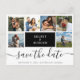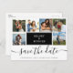 Include 6 of your favorite couple photos for this one of a kind save the date wedding postcard with your names in the center and save the date in script font at the bottom with the date and location under. The back side contains all of your save the date details for your guests.