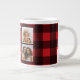 Photo Collage - Monogram Red Black Buffalo Plaid Large Coffee Mug
