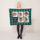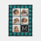 Photo Collage - Monogram Teal Black Buffalo Plaid Fleece Blanket
