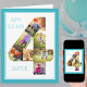 Unique and personalized 4th birthday photo card for a little boy. The photo template is set up for you to add your favorite pictures to this number 4 photo collage plus an extra special photo inside. You can also add his name to the front and customize the birthday greeting inside. The design has skinny font, whimsical typography with a deep turquoise blue and white color palette. The message inside is fully editable and currently reads "Love and joy to our wonderful son on his fourth birthday". Please browse my store for more ages.