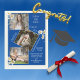 Personalized 4 photo collage graduation party announcement with blue background. Accented with sweet watercolor white daisies. Simple and sweet. Add your special photos to create your own personal announcement. Other colors and styles available.