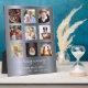 Create your own unique photo collage. Use four, 9 of your favorite photo. With the text: in loving memory. Personalize and add a name and dates. A faux silver metallic looking background, white text.