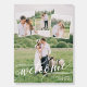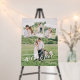 Photo wedding welcome sign with one large photo covering the welcome sign and three smaller photos at the top. Welcome is written at the bottom of the charming welcome sign in a swirly script.