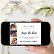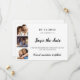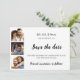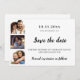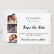 A Save the Date card for your wedding. The text: Save the Date is written with a large trendy hand lettered style script. Personalize and add a 3 photos.