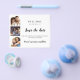 A Save the Date card for your wedding. The text: Save the Date is written with a large trendy hand lettered style script. Personalize and add a 3 photos.