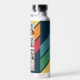 Photo Collage with 4 Photos Colorful Retro Stripes Water Bottle