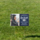 Add a personalized touch to college or high school graduation party decorations with this custom photo navy blue, white and silver lawn sign. Simply place in yard to welcome guests. Design features a faux brushed stainless steel mortar board, stylish modern typography, handwritten style script calligraphy, and a picture of the graduate, such as a senior picture or image from the commencement ceremony. All text is simple to customize. Please note that silver is grey printed color, not metallic foil. This party sign is an elegant way to celebrate the special day. Congratulations to the graduate!