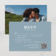 This elegant dusty blue rsvp card features a a mix of serif and sans-serif fonts. To personalize it, simply click 'Personalize This Design,' upload your photo and enter your details. Zazzle will handle the rest. Complementary items available.