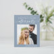 Modern dusty blue budget-friendly elopement / private wedding announcement and reception save the date that features your photo and "Save The Date For Our Happily Ever After Party" in modern white typography and a chic white script with swashes. Add your first names, reception date and location. On the back, personalize your wedding announcement and reception save the date details.