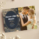 This card effortlessly combines elegance and celestial charm, setting the stage for your celestial-inspired wedding. The combination of silver and gold creates an atmosphere of mystique and sophistication that captures the essence of your special day. What makes this card truly special is the opportunity to feature a cherished photo of you and your partner, adding a personal dimension to your wedding preparations.