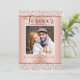 Engagement announcement cards are perfect for when you don’t have a wedding date set, but you can’t wait to share the good news with your friends and family! This elegant luxury design features rose gold background, glitter damask frame on the top and bottom, and trendy script calligraphy “Forever” text. There is a message on the back, which you can delete if you don’t need it, or change the wording to make it a save the date card or engagement party invitation.