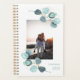 This 2022 personalized planner features a modern watercolor eucalyptus leaf botanical design with faux gold elements. There is a 2022 calendar on the back cover. Personalize the front cover with your photo and name.