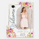 Celebrate the graduate’s big day with this photo graduation welcome sign featuring romantic watercolor florals, elegant gold accents, and a modern script layout. This vertical design includes space for a portrait, school name, class year, and degree — making it a charming and stylish way to greet guests at your graduation party. Ideal for photo ops, entry tables, or near the dessert station, it adds a cheerful yet polished touch to any celebration.