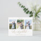 Thank your guests with this elegant three-photo collage wedding monogrammed thank you card! Clean and simple white and gold design full of elegance and grace. The phrase "with Love and Gratitude" in stylish handwritten calligraphy in faux gold foil. Back with an elegant hand-drawn faux foil monogram with the couple's initials in calligraphy, and an area for your thank you message. Easy template where you can add your images, Zazzle will do all the work and add them in the right rectangular shape, size, and position for you! Option to add a "printed" message on the back - OR - leave text section blank so you can hand write individual personal messages later on. Available in several size options. Part of our "Elegant Calligraphy Minimalist Wedding" collection with a variety of coordinating products available. Visit the entire collection with this link: https://www.zazzle.com/collections/elegant_calligraphy_minimalist_wedding_stationery-119497981924462546