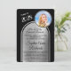 This elegant Graduation announcement from the parents features a double arch with black lettering against a brushed silver background and a room for a photo of the honoree of this special occasion. The back of the card has room for three additional photos. Much to personalize to make appropriate for your own event. Any design questions, just send a chat or an email to charmdesignstudio@rcn.com and we'll be delighted to assist. Also contact us if you wish the background color to be changed to a school color or favorite color.