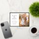 Simple and stylish, this beautiful save-the-date wedding announcement card features a classy border and elegant calligraphy script pressed in real gold foil with 2 photos for personalizing.