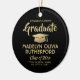 Commemorate the graduate's achievement with a custom photo black and gold round graduation Christmas ornament. Picture and all text are simple to customize. Include school name and degree, congratulations, thanks mom and dad, or other message of your choice. Design features a black background, a gold faux foil graduation cap, personalized modern typography name, school, & class year, and one photo of your choice, such as a senior picture or image from the commencement ceremony. Please note that the gold is printed color, not metallic foil. Makes a thoughtful keepsake gift idea and an elegant addition to Xmas home decor. Congratulations to the graduate!