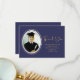 This minimal thank you card features a gold, navy and white oval to highlight the graduate's portrait. A bold script Thank You adds a touch of elegance as well to this navy blue card.