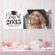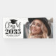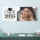 This classic yet modern graduation party banner is the perfect way to celebrate the Class of 2026. The design is arranged with the graduation details on the left side, featuring "Class of 2026" in bold black and white, accented with elegant script. A graduation cap icon adds a festive touch, while space below allows for the graduate’s name and school, creating a personalized centerpiece for the celebration.