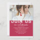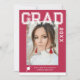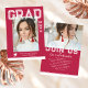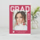 Photo Graduation Party Elegant Modern Script Invitations feature your favorite photo with the simple white text "Grad (year)" and your name and personalized graduation details on the front on a viva magenta background. On the reverse add an additional picture with your graduation invitation information below. Personalize by editing the text in the text boxes provided. Created by ©Evco Studio www.zazzle.com/store/evcostudio
