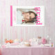 Photo Graduation Party Elegant Modern Script Banner Party Sign feature your favorite photo with the simple pink text "Grad (year)" and your name and personalized graduation details on the front. Perfect for the grad as a graduation gift or graduation party decor. Created by ©Evco Studio www.zazzle.com/store/evcostudio