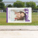 Photo Graduation Party Elegant Modern Script Banner Party Sign feature your favorite photo with the simple purple text "Grad (year)" and your name and personalized graduation details on the front. Perfect for the grad as a graduation gift or graduation party decor. Created by ©Evco Studio www.zazzle.com/store/evcostudio