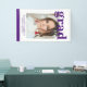 Photo Graduation Party Elegant Modern Script Banner Party Sign feature your favorite photo with the simple purple text "Grad (year)" and your name and personalized graduation details on the front. Perfect for the grad as a graduation gift or graduation party decor. Created by ©Evco Studio www.zazzle.com/store/evcostudio