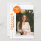 Photo Graduation Party Modern Script Black Orange Invitations feature your favorite photo with the simple text "Graduate" and your name and personalized graduation details. Personalize by editing the text in the text boxes provided and adding your favorite photo. Personalize with your graduation invitation information on the reverse. Created by ©Evco Studio www.zazzle.com/store/evcostudio