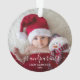 Help them celebrate their first grandchild with this beautiful modern keepsake ornament. The white text reads "Our first Christmas as grandparents," with the word "grandparents" in elegant handwriting script with flourishes before and after. Easily replace the sample image with your favorite photo of the new baby, and add his or her name and the year. A dark gradient filter helps make the text pop.