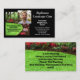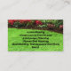 Add your photo or logo to this beautiful elegant and modern landscaper business card. Beautiful plush green grass with edged mulch beds, red annual flowers, shrubs and mature trees in the background. A perfect representation of your Lawn Care, Landscape, horticulture, garden center or landscape designer business. This item is available as a complete set, including items including business cards, stationery, advertisements, flyers, postcards and more.