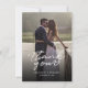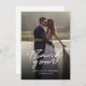 A great and thoughtful way to thank your friends, family, and coworkers who graced you their presence on your your wedding day with this modern photo thank you cards with script hand lettered "thank you" and a love heart.