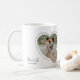 Photo heart location map personalized engagement, marriage or special memory gift. Upload a photo and map location that holds a special meaning to the happy couple. The text around the heart reads "the beginning of our adventure".
