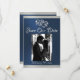 This romantic design features an elegant blue background with ribbon borders, placeholder for couple's photo, & two linked hearts with the date for the event in elegant script on the front. The back has a monogram placeholder, more info and place for your website on the back. Available in several colors for your wedding theme. (Ribbon is simulated in the artwork). Designed to coordinate with the "Two Shall Become One - Silver & Gold" Wedding Collection. To change details, click «Personalize». To move the text or change the text size, font, or color click «Click to customize further»