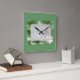 Classic holiday greetings photo design personalized Christmas clock. The Christmas photo frame centered in the center is a green antique looking frame that has been made modern with sparkling stars and wisps of light. Change the template photo to your favorite Christmas family photo! Personalize with your family name, or add a holiday message. Holiday background is classic Christmas green. Perfect for those who enjoy modern designs and classic holiday colors. Simple, yet classic and elegant at the same time. This festive clock will appeal to many different tastes and styles. Perfect holiday design not just to wish holiday greetings, but also for Christmas party invitations, holiday dinner invitations, etc. Visit our online angela65 Zazzle shop for lots of other winter and happy holidays items.